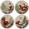 Cada peça é decorada com cenas nostálgicas do Papai Noel, árvores cobertas de neve, presentes e mensagens como amor, paz, alegria e esperança, tudo com bordas em padrão xadrez e detalhes de azevinho que aquecem o coração.