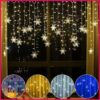 Luzes em LED Modelo Cortina Decoração de Natal Flocos de Neve